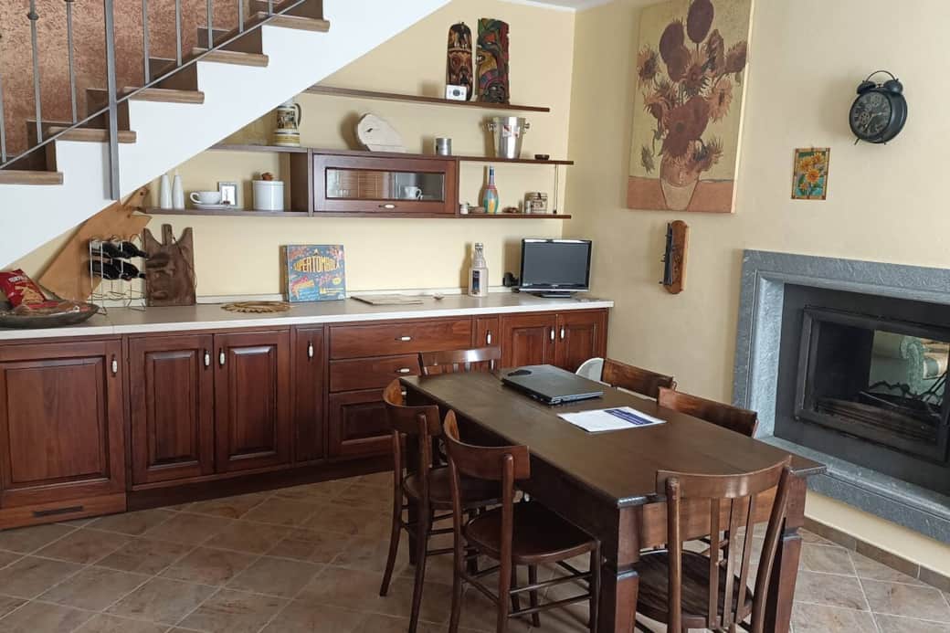 La casa si estende su 3 livelli per una superfice di circa 150 mq complessivi, dispone di 2 ingressi, al piano terra troviamo la cucina completa di piano cottura, frigorifero, congelatore, forno, lavastoviglie, piatti bicchieri e posate varie, tavolo per 6 persone, caminetto a vista, in cucina è presente anche una TV con visione dei canali via internet.