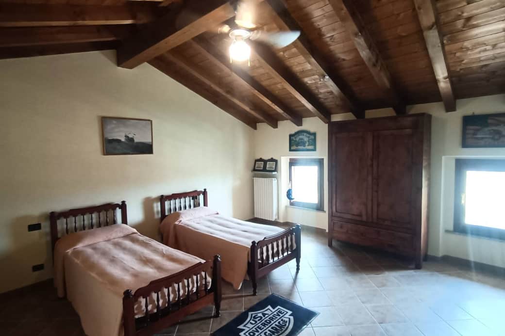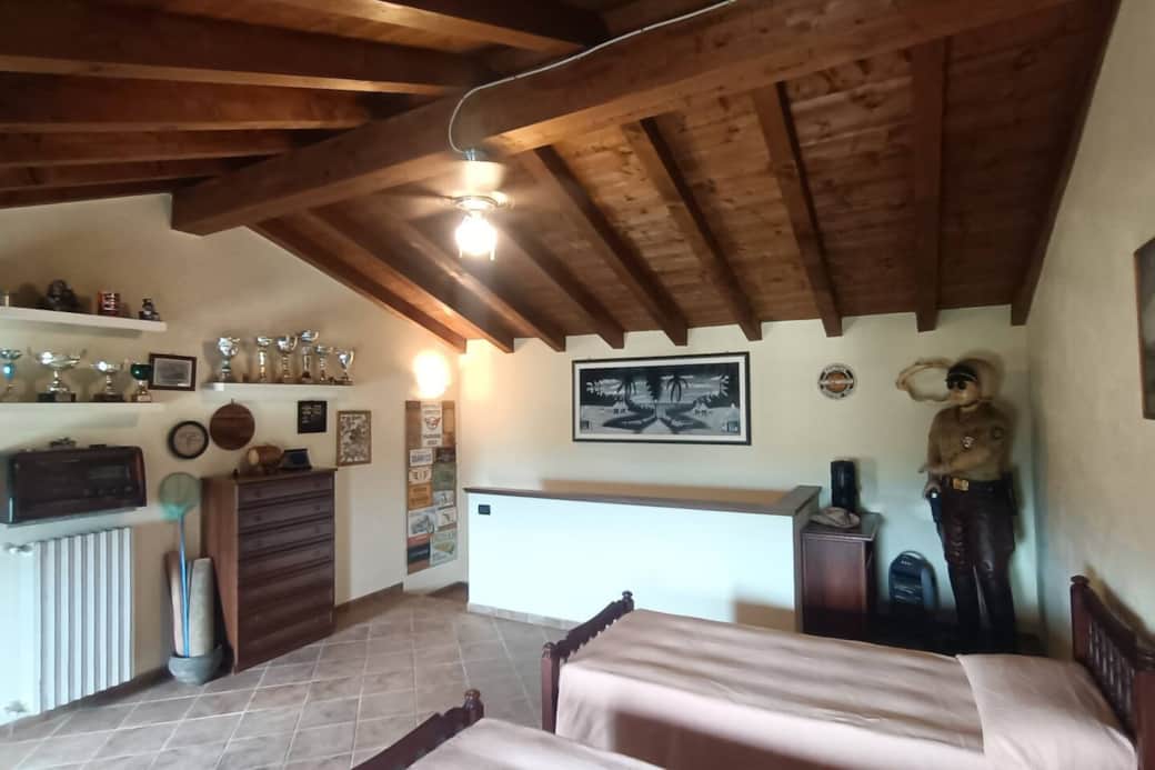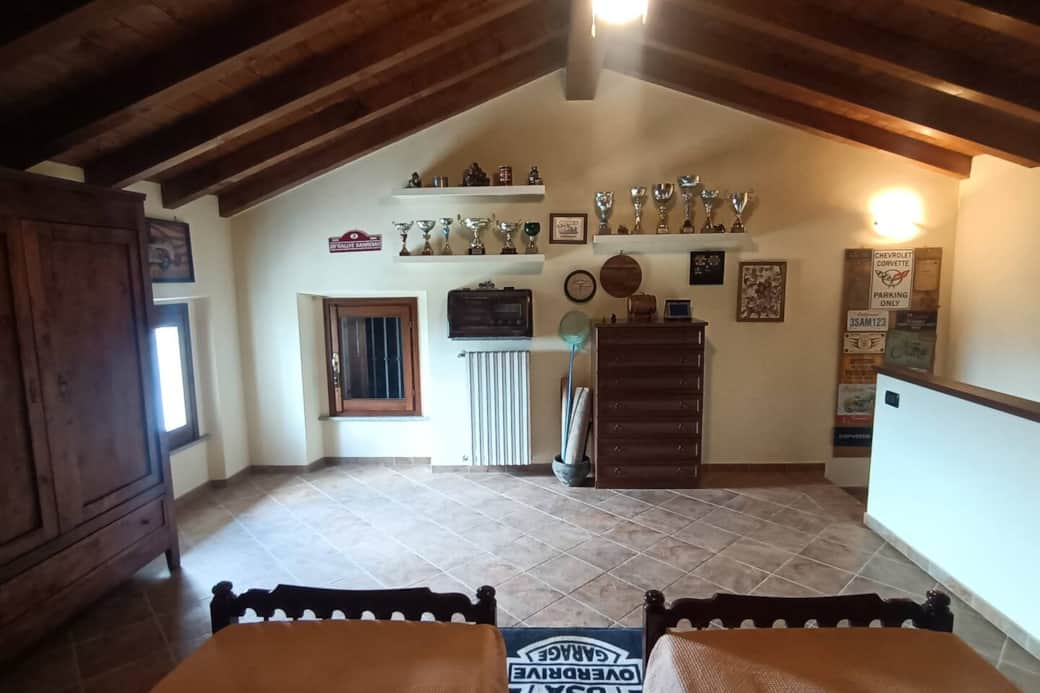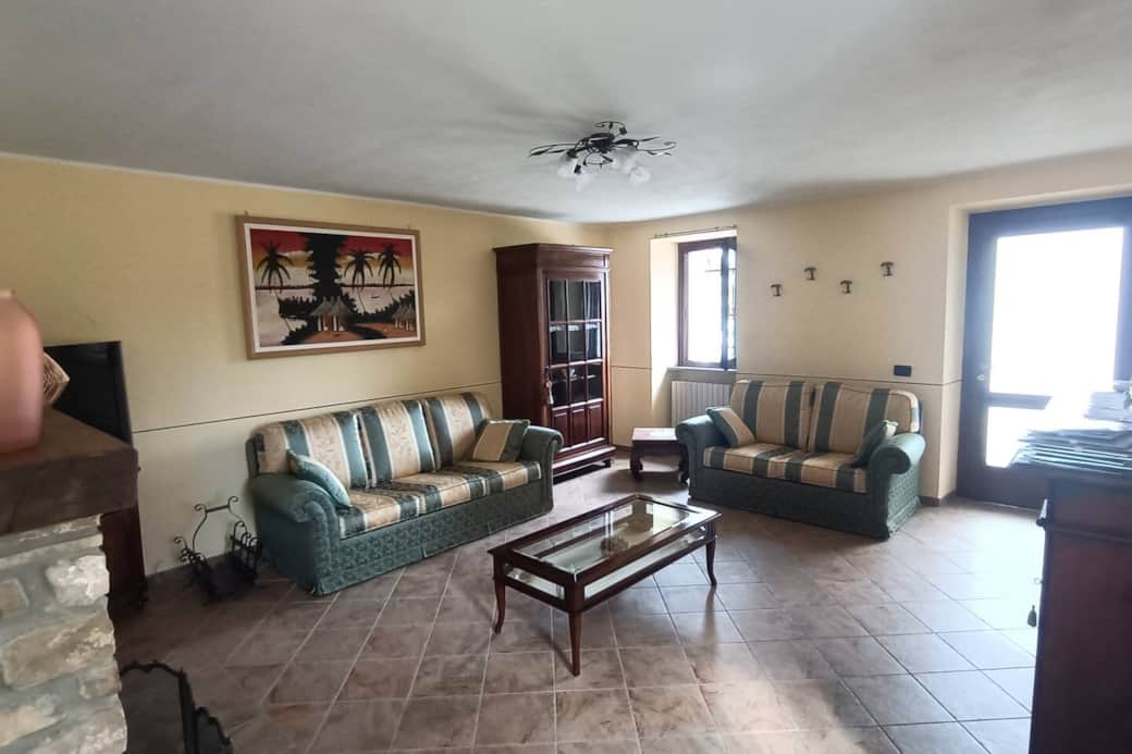 Salotto fornito di doppio divano, caminetto, TV con decoder satellitare.